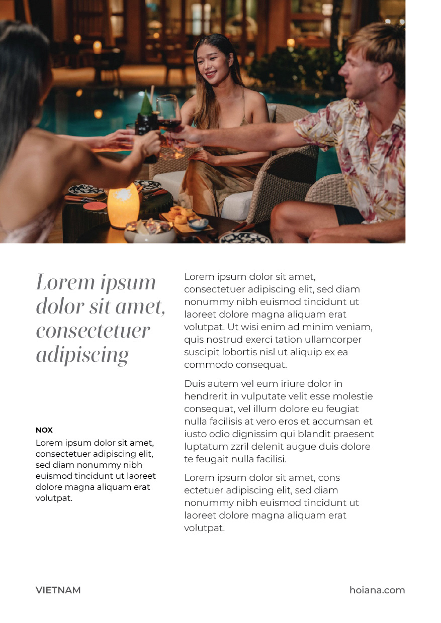 As Vietnam's first and finest integrated resort, Hoiana combines a fantastic beachside location and centuries-old tradition with sophisticated elegance and vibrant entertainment. Opening its doors in 2020, the resort includes with world class entertainment and dining facilities, a championship golf course, luxurious accommodations managed by Rosewood Hotel Group, as well as a casino, luxury mall, and MICE facilities. A fast growing venture, it has been pushing against the bounds of its branding, and the time has come to refresh and evolve the visual identity to suit bigger opportunities and larger international audiences.