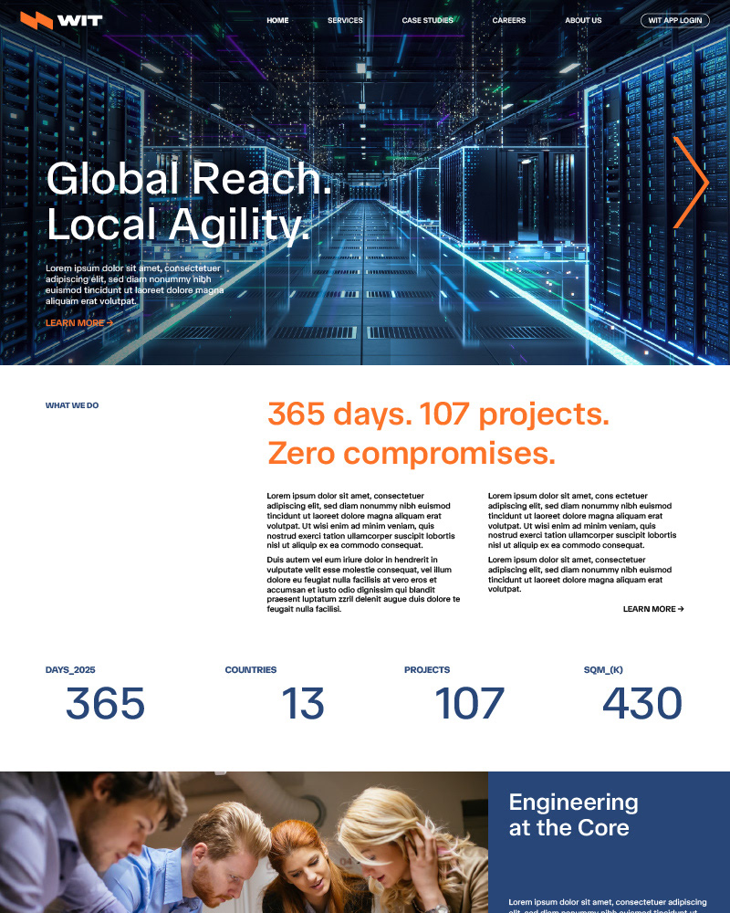 WIT Consulting is a smart office and data centre design and construction consultancy with an impressive client list and a global footprint. After spending most of 2025 developing proprietary tools and management platforms, WIT is now positioned for rapid growth, strategic partnerships, and potential acquisition — and needed a new brand visual identity to reflect that.